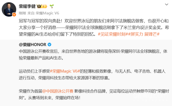 【CNMO科技音信】3月27日,荣耀CEO李健发文称,荣耀阿尔法寰球旗舰店刚拿下了米兰室内盘算推算奖金奖。