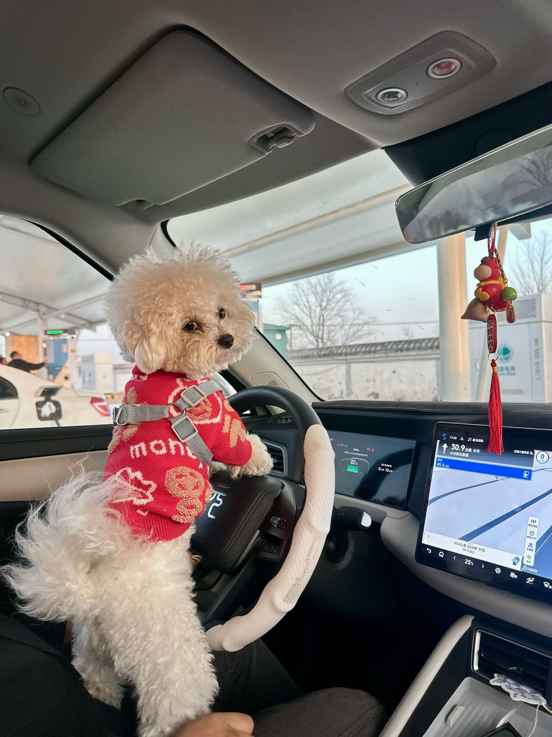 尔后,夏河每段路跑200-300公里就会去充电。一齐上,夏河用的是假想汽车充电桩,从7%充到95%只用26分钟,刚巧行径一下筋骨。他还建议,“自驾返乡的一又友不要径直导航到家,可以在舆图的顺道充电页面,锁定一个办事区,分段导航,路上多刷新导航,哪条快走哪条路,随时调动道路。”