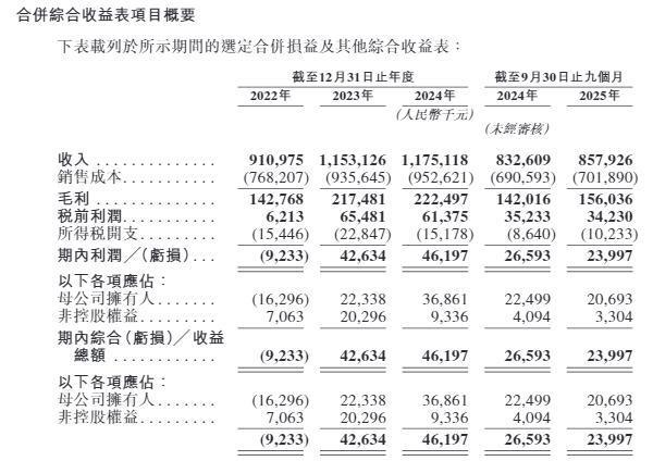 招股书走漏,在2022年、2023年、2024年以及2025年前9个月,同仁堂医养收入永别为9.11亿元、11.53亿元、11.75亿元和8.58亿元,利润永别约为-923万元、4263万元、4620万元和2400万元。