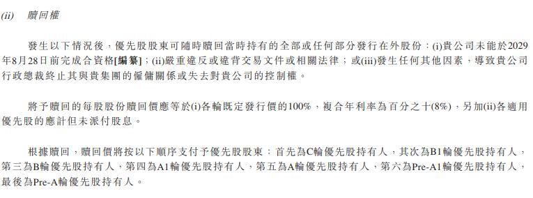 更值得警惕的是,公司优先股存在强制赎回条件,若未能在2029年8月28日前完成上市,将触发约2.73亿股优先股的现款赎回义务,滚球app进一步加重资金链压力,而早期投资基金存续期周边,退出压力也在倒逼公司加快IPO程度,或对其订价与恒久策略布局产生影响。
