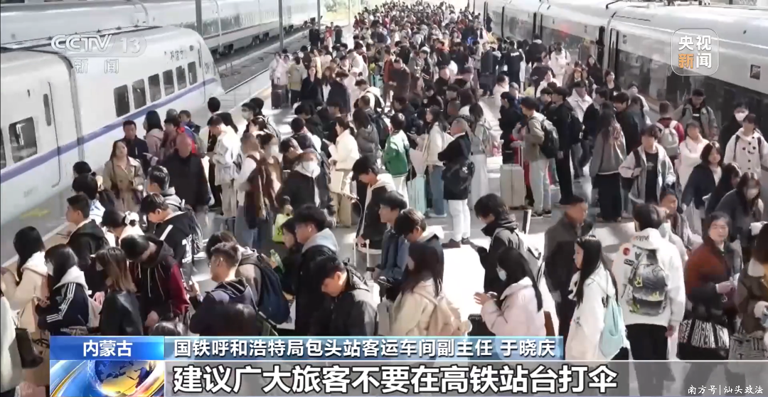 春运返乡可能遭逢雨雪天气。要是在站台上打伞,列车进站时由于气流气压等变化,加多了撑伞者被“吸”向列车的风险。气流也有可能将雨伞带到轨谈或卷到构兵网上,影响列车安全开赴点。