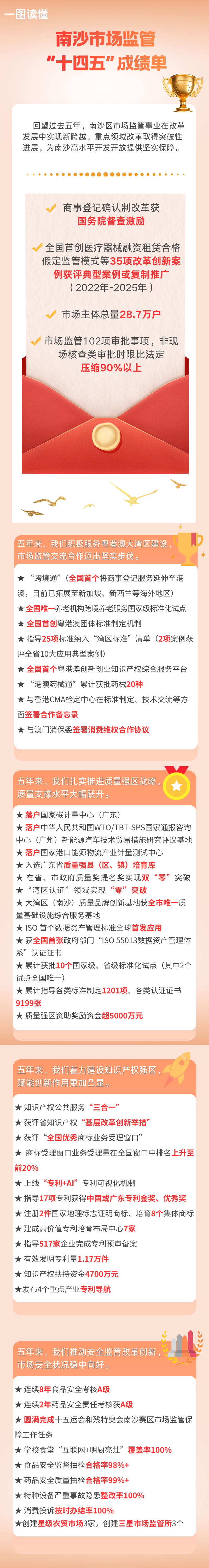 商事登记阐明制编削获国务院督查激发,35项编削鼎新案例获评典型案例或复制实施,南沙市集主体总量28.7万户,市集监管102项审批事项、非现场核查类审批时限比法定压缩90%以上……