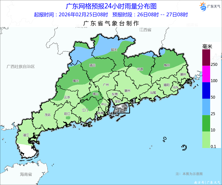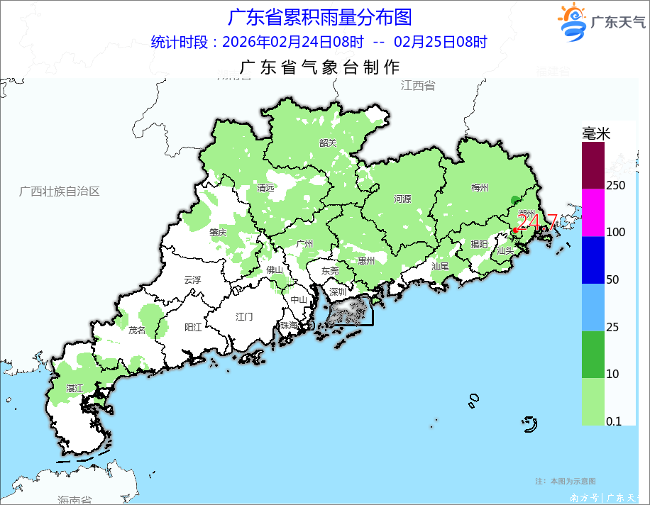 不外,广东的天气画风正在改革中。24日白日到今天(25日)清晨,雷州半岛北部、珠三角北部、粤东北部和粤北市县出现了小雨。