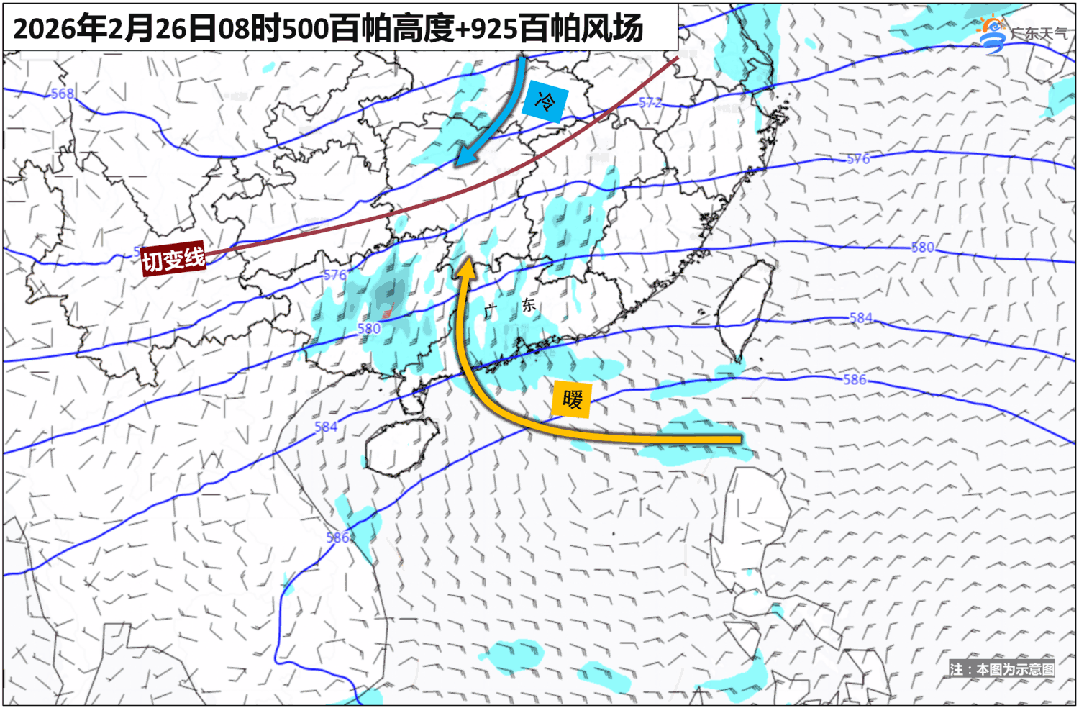 瞻望2月底到3月初,由于朔方冷空阵容力减轻,来自海洋的暖潮湿流渐趋活跃,冷暖气流打来打去,导致广东的降雨渐趋频频。其中26日到28日,广东自北向南有一次中到大雨局部暴雨的降水历程,可能出现本年首场春雷,部分市县有20~40毫米的短时强降水和6~8级短时大风。